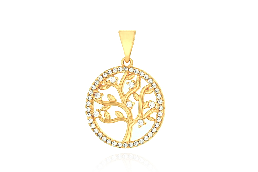 PINGENTE BANHADO EM RÓDIO BRANCO, ÁRVORE DA VIDA 20mm DIAMETRO