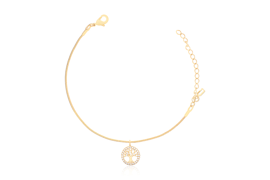 PULSEIRA BANHADA EM OURO, ELO PORTUGUÊS 2,50mm, 16cm COMPRIMENTO, PONTO DE LUZ 4,50mm E PINGENTE PAZ 11mm DIÂMETRO