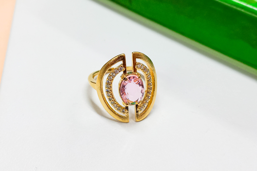 ANEL BANHADO EM OURO, COM ZIRCÔNIAS