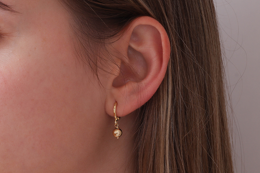 BRINCO BANHADO EM OURO, ESFERA CRAQUELADA 6mm, LINHA TRADICIONAL