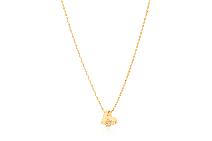 GARGANTILHA BANHADA EM OURO, ELO 1,10mm LARGURA, 80cm COMPRIMENTO, CORAÇÃO 9mm LARGURA E QUADRADO 17x13mm COM CORAÇÃO