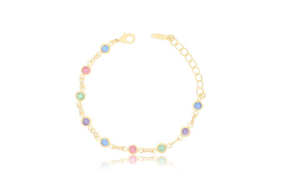 PULSEIRA BANHADO EM OURO CRISTAL REDONDO 14mm DIÂMETRO ELO PORTUGUÊS 3mm DIÂMETRO E 17cm COMPRIMENTO