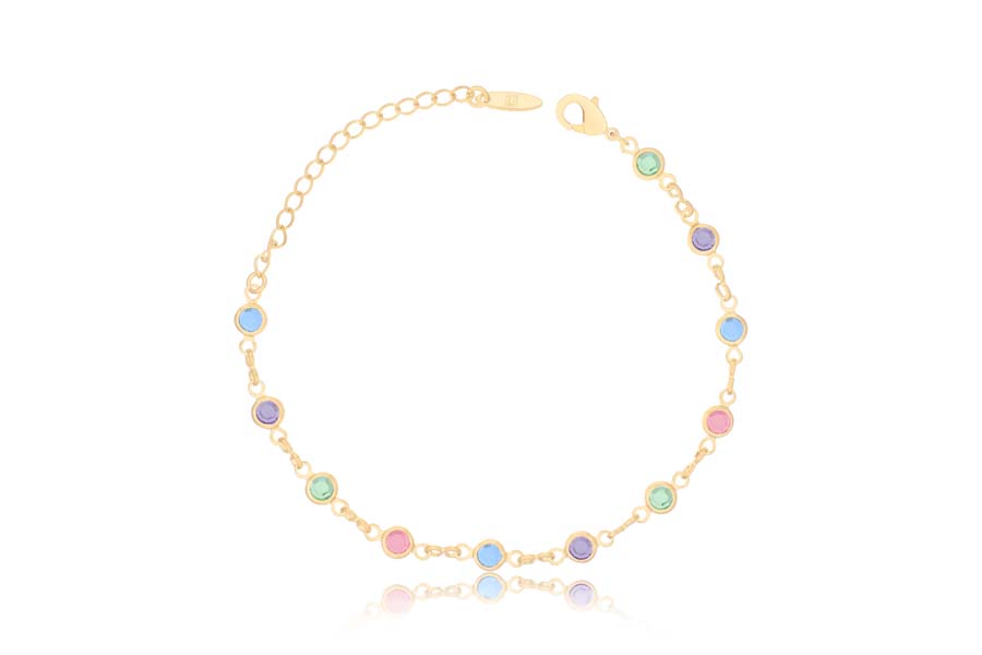 PULSEIRA BANHADO EM OURO CRISTAL REDONDO 14mm DIÂMETRO ELO PORTUGUÊS 3mm DIÂMETRO E 17cm COMPRIMENTO