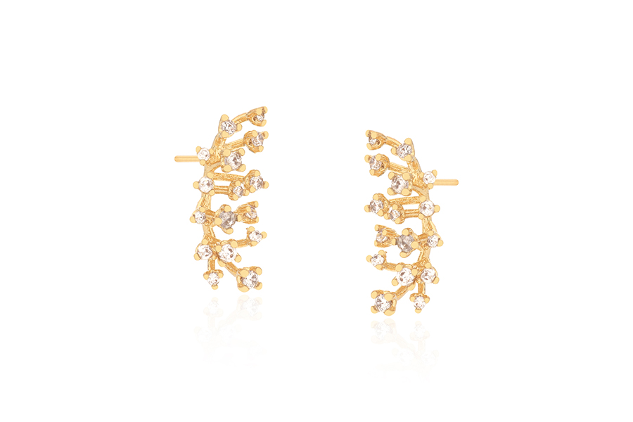 BRINCO BANHADO EM OURO, PONTO DE LUZ 5mm E CRAVAÇÃO INGLESA