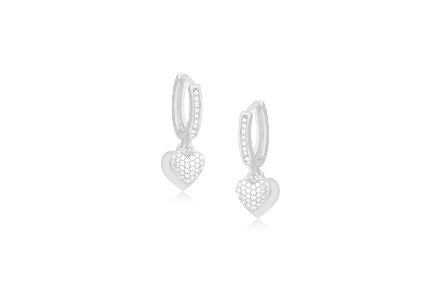 BRINCO EM PRATA, CORAÇÃO CRAVEJADO COM BORDAS LISAS