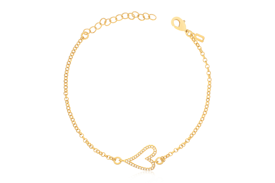 PULSEIRA BANHADA EM OURO, ELO 2,30mm LARGURA, 16cm COMPRIMENTO, EXTENSOR 5cm COMPRIMENTO E CORAÇÃO 7mm LARGURA, PARA QUALQUER COR
