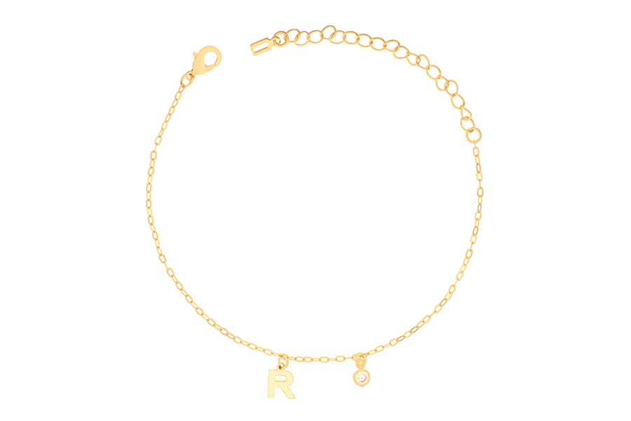 PULSEIRA BANHADA EM OURO, ELO PORTUGUÊS 2,50mm, 16cm COMPRIMENTO, PONTO DE LUZ 4,50mm E PINGENTE PAZ 11mm DIÂMETRO