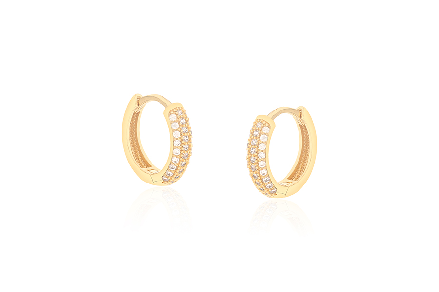 BRINCO BANHADO EM PRATA LEVE, ARGOLINHA 13mm DIÂMETRO E 20 ZIRCÔNIAS