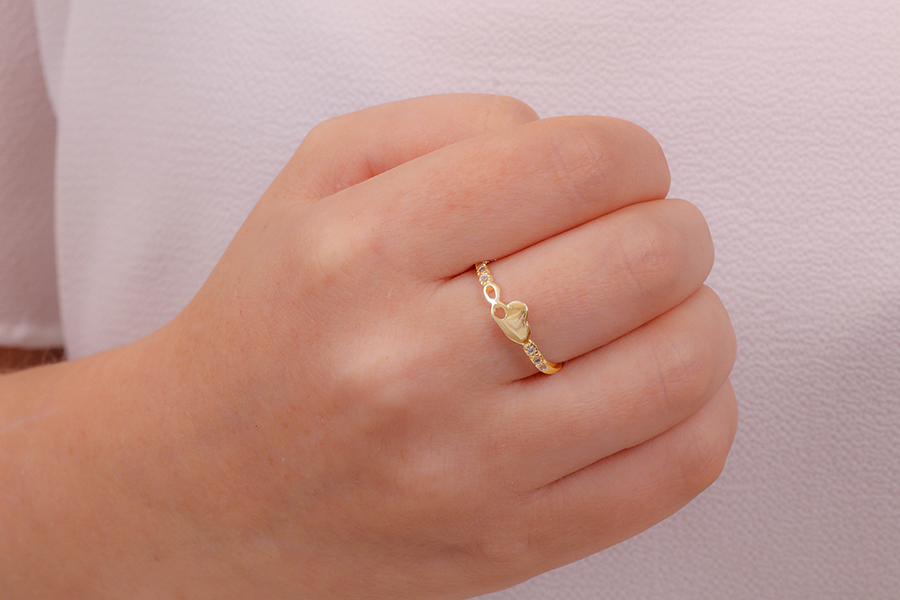 ANEL BANHADO EM OURO, COM 16 ZIRCÔNIAS E CORAÇÃO
