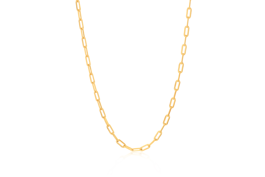 CORRENTE BANHADA EM OURO, ELO RABO DE RATO 1mm, 45cm COMPRIMENTO, EXTENSOR 5cm COMPRIMENTO E PESO 3,40g