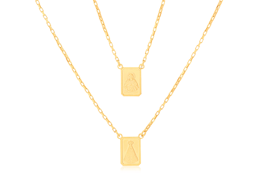 ESCAPULÁRIO EM PRATA, INFANTIL, SAGRADO CORAÇÃO DE JESUS E NOSSA SENHORA DO CARMO, RETANGULAR 6,30mm LARGURA, ELO GRUMET, 45cm COMPRIMENTO, COM FECHO