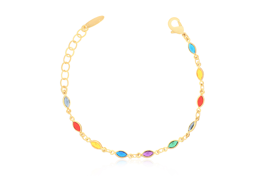 PULSEIRA BANHADA EM OURO, OLHO GREGO 11mm DIÂMETRO, QUALQUER COR, ELO VENEZIANA 0,80mm, LINHA TRADICIONAL