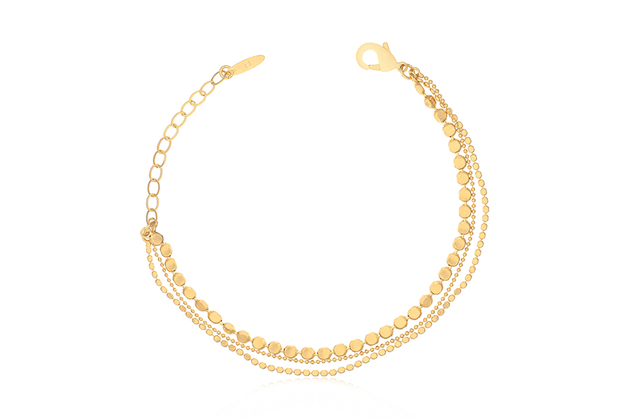 PULSEIRA BANHADA EM OURO, CORRENTE ELO PORTUGUÊS 2,50mm, 17cm COMPRIMENTO, EXTENSOR 5cm COMPRIMENTO E PESO 2,20g