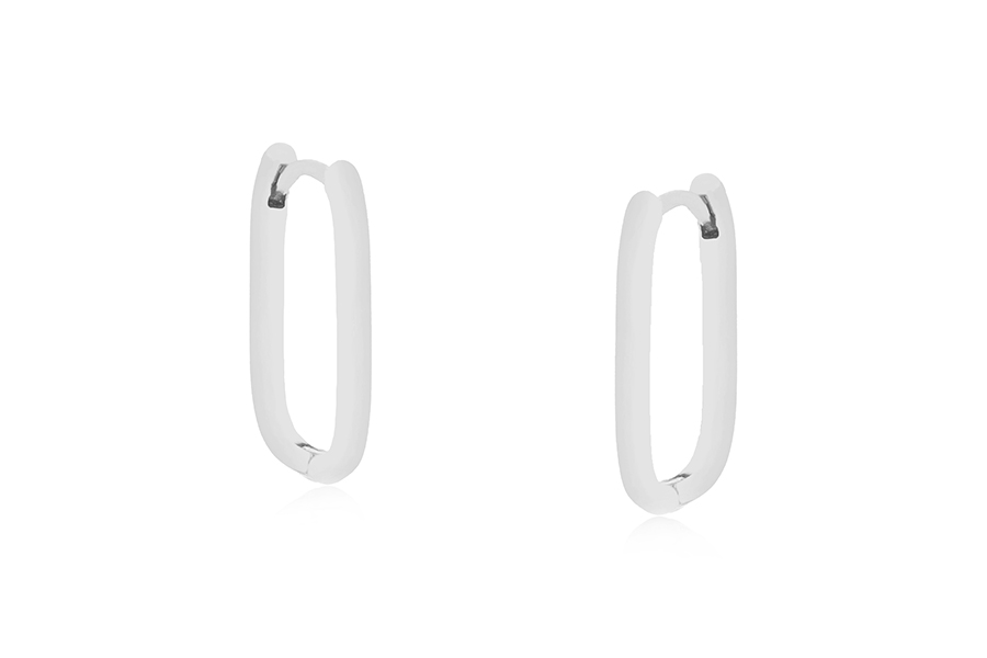 BRINCO BANHADO EM PRATA LEVE, ARGOLINHA RETANGULAR 11x8mm