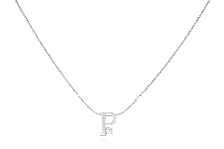 GARGANTILHA BANHADA EM PRATA LEVE, ELO 0,70mm, 40cm COMPRIMENTO, LETRA 11mm ALTURA E PONTO DE LUZ 3mm
