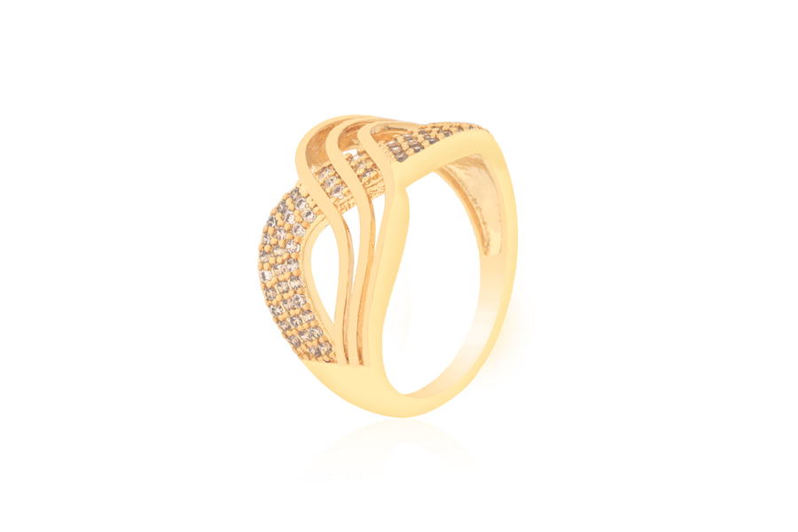 ANEL BANHADO EM OURO, COM ZIRCÔNIAS