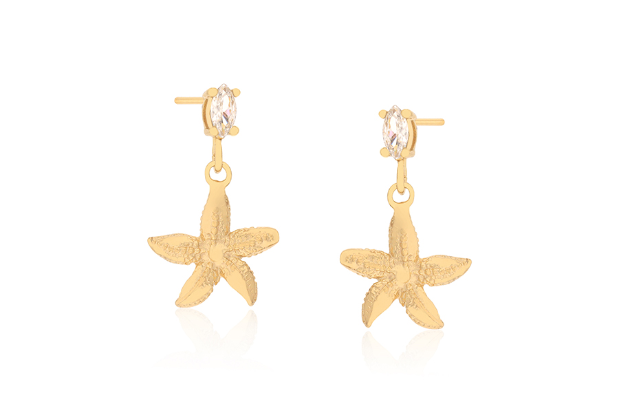 BRINCO EM PRATA, ESTRELA TRABALHADA COM 1 ZIRCÔNIA 5,50mm ALTURA