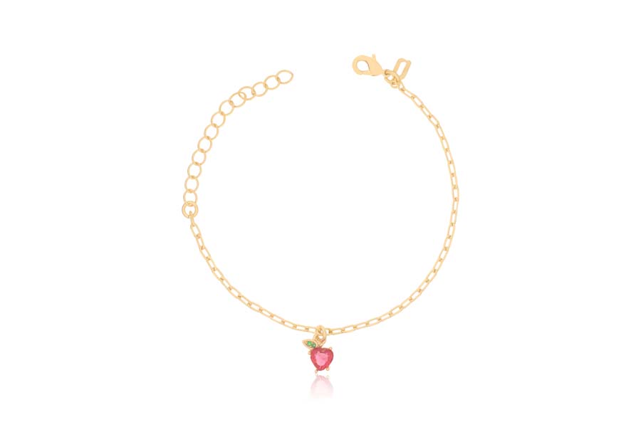 PULSEIRA BANHADA EM OURO, ELO PORTUGUÊS 3mm, ELO CORAÇÃO 4,20mm LARGURA, PINGENTE CORAÇÃO 11mm LARGURA COM MENINA