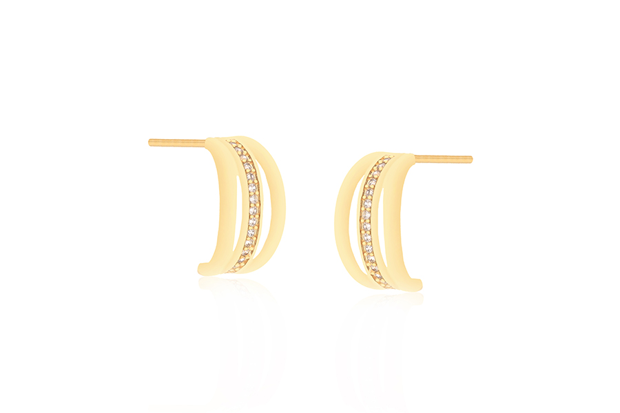 BRINCO BANHADO EM OURO 9mm LARGURA COM ZIRCÔNIAS BRANCAS OU COLORIDAS