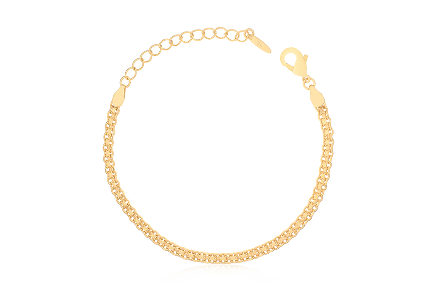 PULSEIRA BANHADA EM OURO, CORRENTE ELO PORTUGUÊS 2,50mm, 17cm COMPRIMENTO, EXTENSOR 5cm COMPRIMENTO E PESO 2,20g