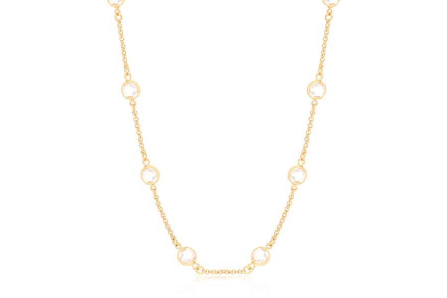 GARGANTILHA BANHADA EM OURO, VENEZIANA 0,80mm, 43cm COMPRIMENTO E ZIRCÔNIA REDONDA 8mm, PARA QUALQUER COR DE PEDRA