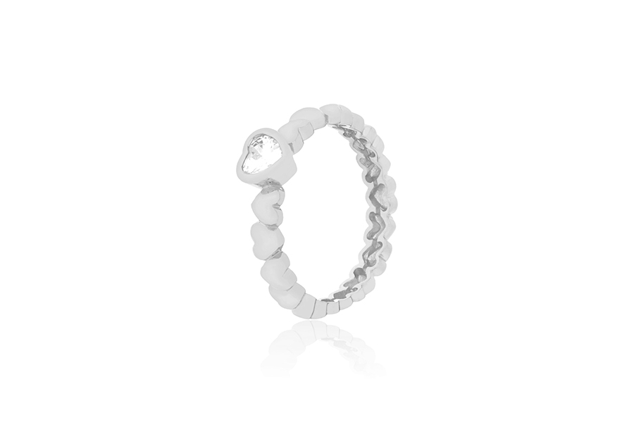 ANEL EM PRATA, CORAÇÕES LISOS E CRAVEJADOS, 9 ZIRCÔNIAS