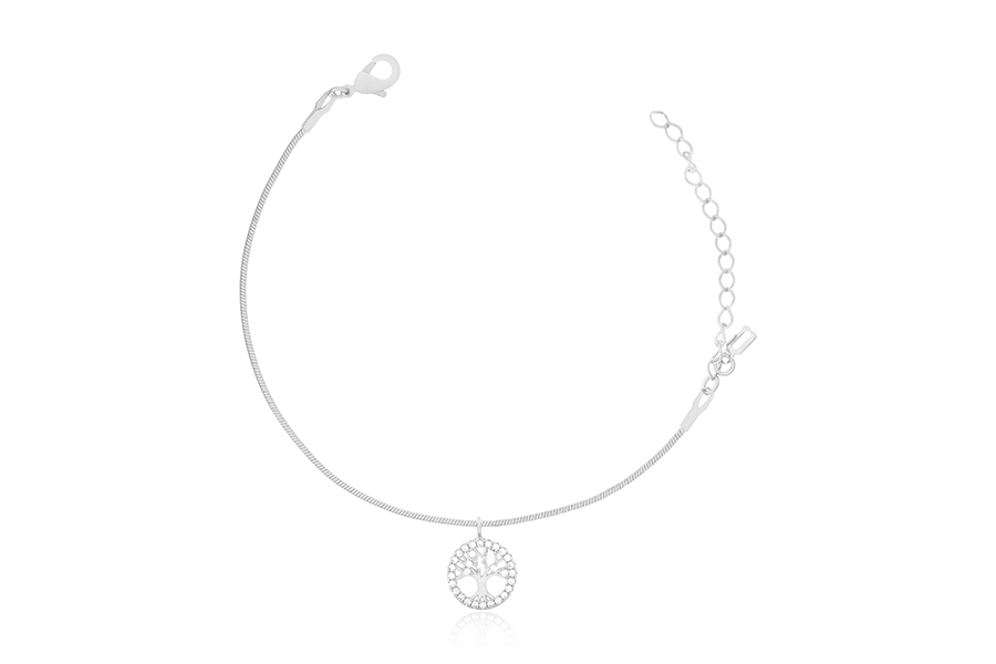 PULSEIRA BANHADA EM PRATA LEVE, ELO PORTUGUÊS 3mm DIÂMETRO E CORAÇÃO 10,50mm LARGURA COM FORRO E 20 ZIRCÔNIAS