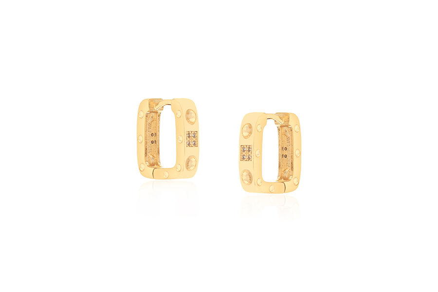BRINCO EM PRATA, QUADRADO VAZADO COM 1 LADO CRAVEJADO, 5mm