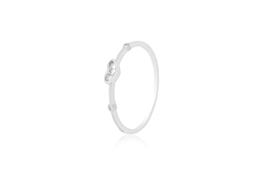 ANEL BANHADO EM RÓDIO BRANCO, CORAÇÃO 5mm LARGURA