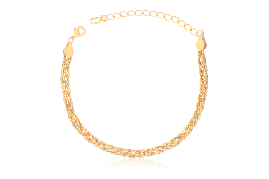 PULSEIRA BANHADA EM OURO, CORRENTE ELO PORTUGUÊS 2,50mm, 17cm COMPRIMENTO, EXTENSOR 5cm COMPRIMENTO E PESO 2,20g