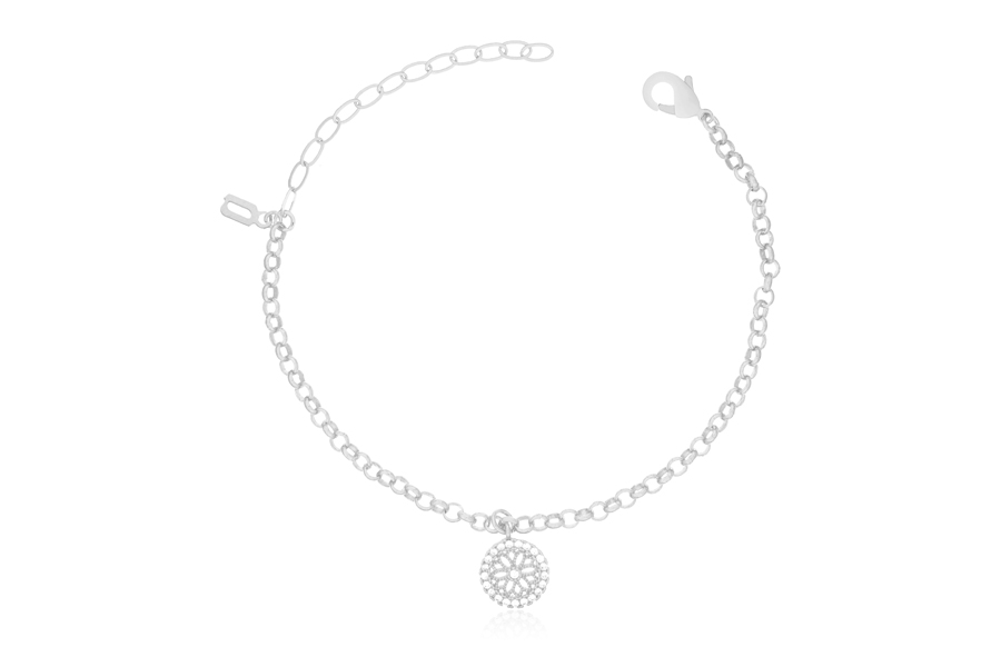 PULSEIRA BANHADA EM PRATA LEVE, ELO PORTUGUÊS 3mm DIÂMETRO E CORAÇÃO 10,50mm LARGURA COM FORRO E 20 ZIRCÔNIAS