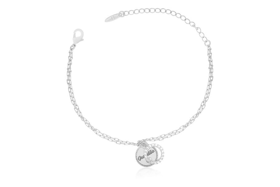 PULSEIRA BANHADA EM PRATA LEVE, ELO PORTUGUÊS 3mm DIÂMETRO E CORAÇÃO 10,50mm LARGURA COM FORRO E 20 ZIRCÔNIAS