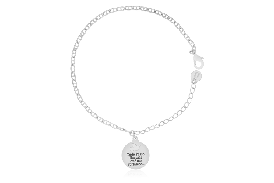 PULSEIRA BANHADA EM OURO, ELO PORTUGUÊS 2,50mm, 16cm COMPRIMENTO, PONTO DE LUZ 4,50mm E PINGENTE FÉ 11mm DIÂMETRO