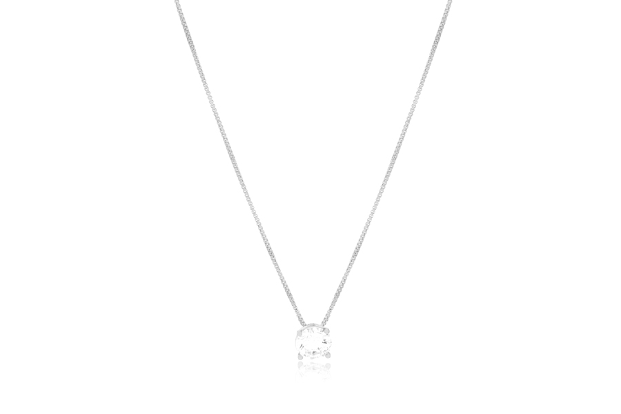 GARGANTILHA BANHADA EM PRATA LEVE, ELO 0,70mm, 40cm COMPRIMENTO, LETRA 11mm ALTURA E PONTO DE LUZ 3mm