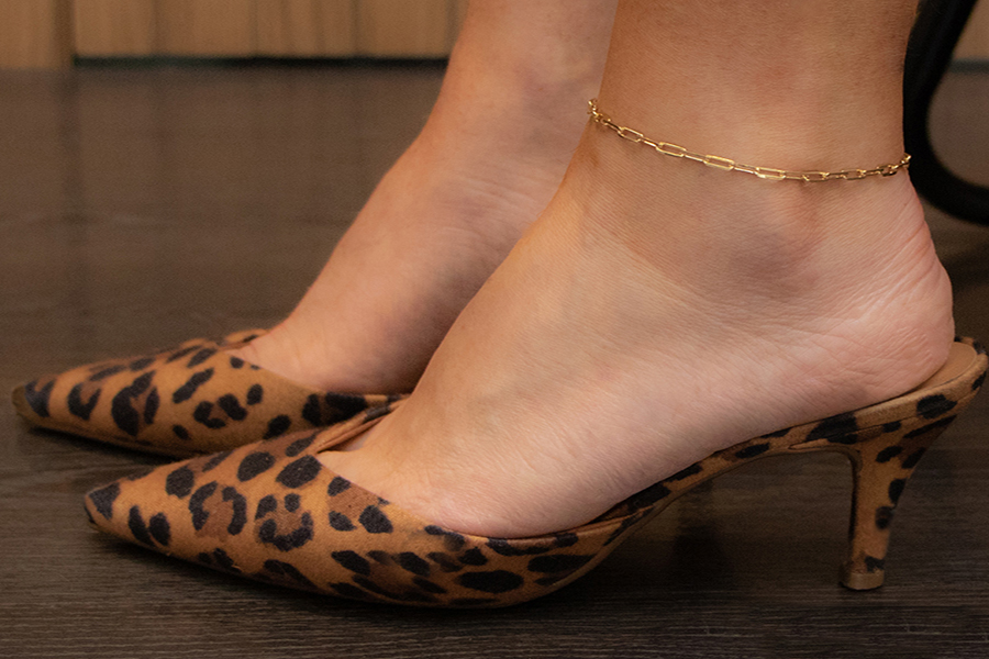 TORNOZELEIRA BANHADA EM OURO, ELO 2,60mm LARGURA, 22cm COMPRIMENTO E FIGA