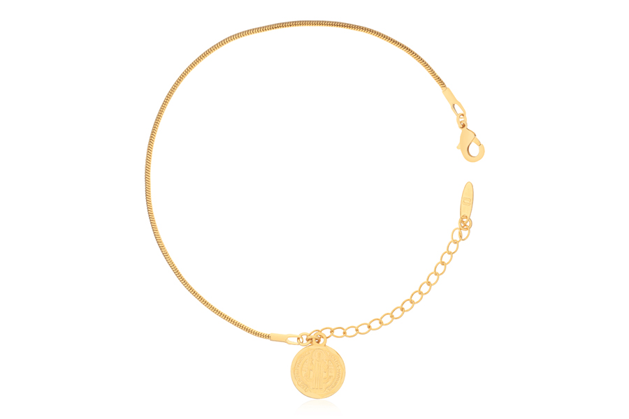 PULSEIRA BANHADA EM OURO, ELO 2,80mm LARGURA, 16cm COMPRIMENTO E MEDALHA PAI NOSSO 15mm DIÂMETRO