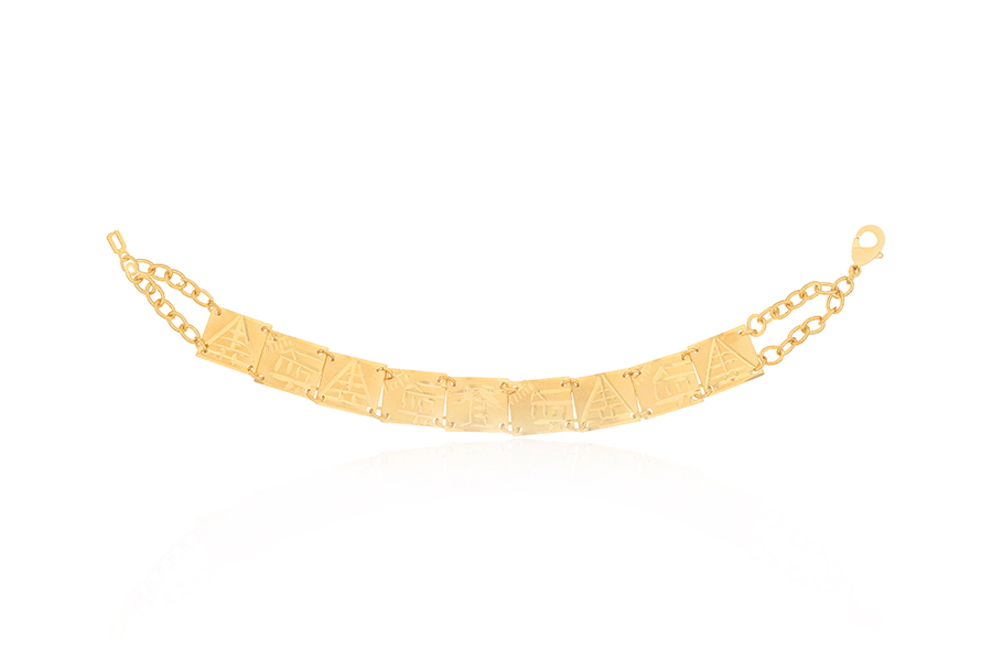PULSEIRA BANHADA EM OURO, ELO PORTUGUÊS DUPLO 2mm E CARTIER 3,30x1,90mm, 15cm COMPRIMENTO E BORBOLETA 13mm LARGURA