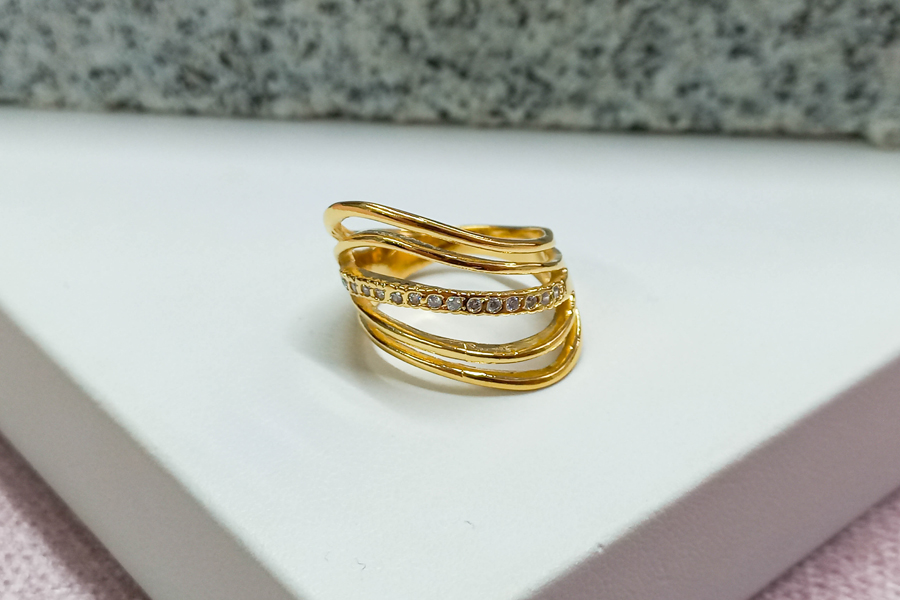 ANEL BANHADO EM OURO, COM ZIRCÔNIAS