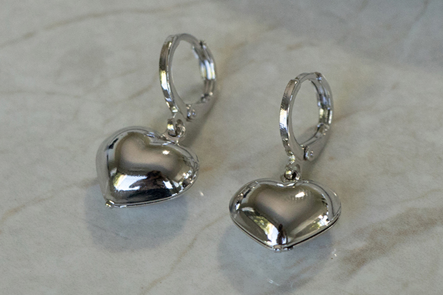 BRINCO BANHADO EM PRATA LEVE, ARGOLINHA 12,50mm DIÂMETRO E CORAÇÃO