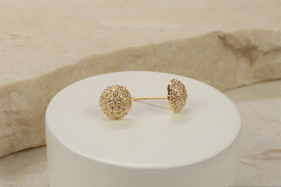 BRINCO BANHADO EM OURO, PONTO DE LUZ 5mm E CRAVAÇÃO INGLESA