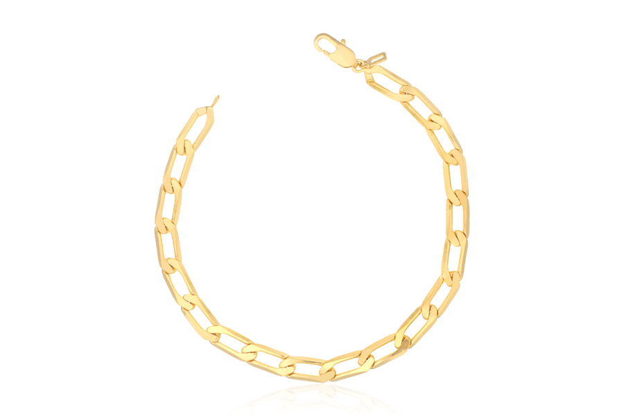 PULSEIRA BANHADA EM OURO, CORRENTE ELO PORTUGUÊS 5mm, 17cm COMPRIMENTO, EXTENSOR 5cm COMPRIMENTO E PESO 4,60g
