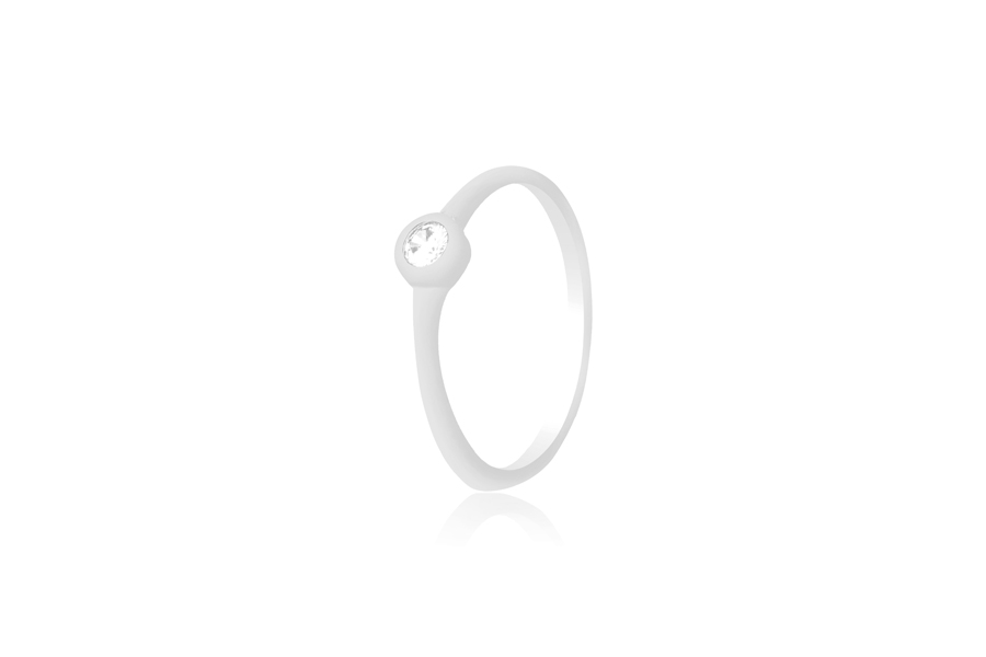 ANEL BANHADO EM RÓDIO BRANCO, SOLITÁRIO 6mm, LINHA TRADICIONAL