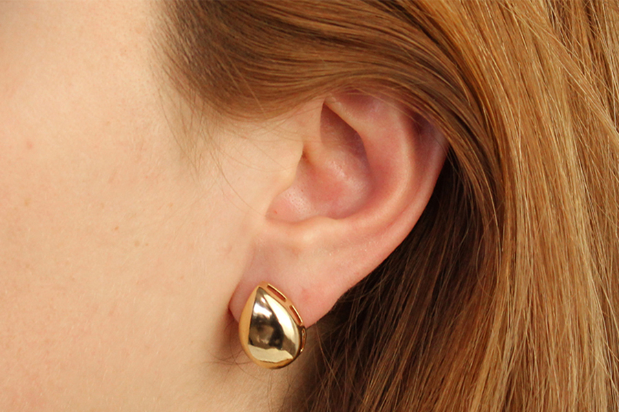 BRINCO BANHADO EM OURO, BASE OVAL 30x20mm E GOTA IRREGULAR 23mm LARGURA