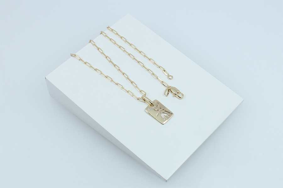 GARGANTILHA BANHADA EM OURO, ELO 1,10mm LARGURA, 80cm COMPRIMENTO, CORAÇÃO 9mm LARGURA E QUADRADO 17x13mm COM CORAÇÃO