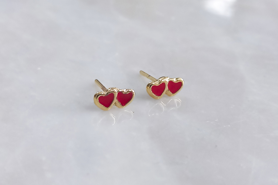 BRINCO BANHADO EM OURO, DOIS CORAÇÕES 9mm LARGURA