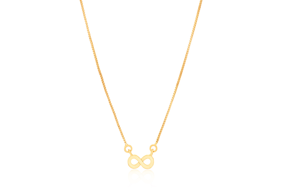 GARGANTILHA BANHADA EM OURO, ELO PORTUGUÊS 2,50mm DIÂMETRO, 40cm COMPRIMENTO E INFINITO 25mm LARGURA
