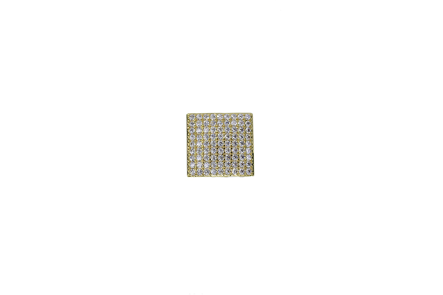 BRINCO BANHADO EM OURO, QUADRADO 6,50mm, COM ZIRCÔNIAS NAS LATERAIS