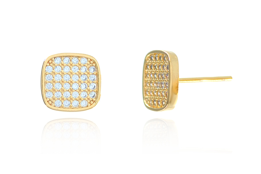 BRINCO BANHADO EM OURO, CORAÇÃO ZIRCÔNIA 8X8mm, PARA QUALQUER COR DE PEDRA