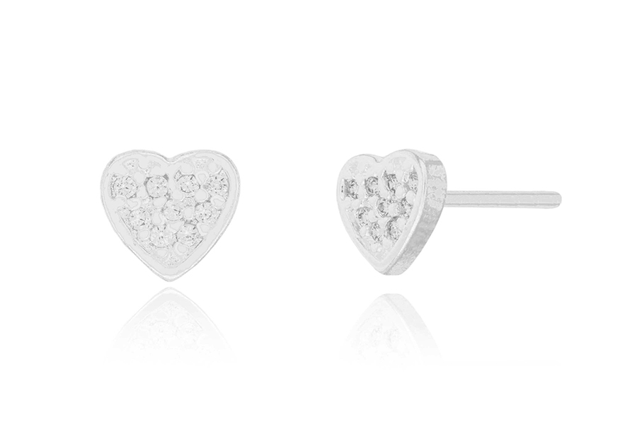 BRINCO EM PRATA, PONTO DE LUZ CORAÇÃO 7mm ALTURA