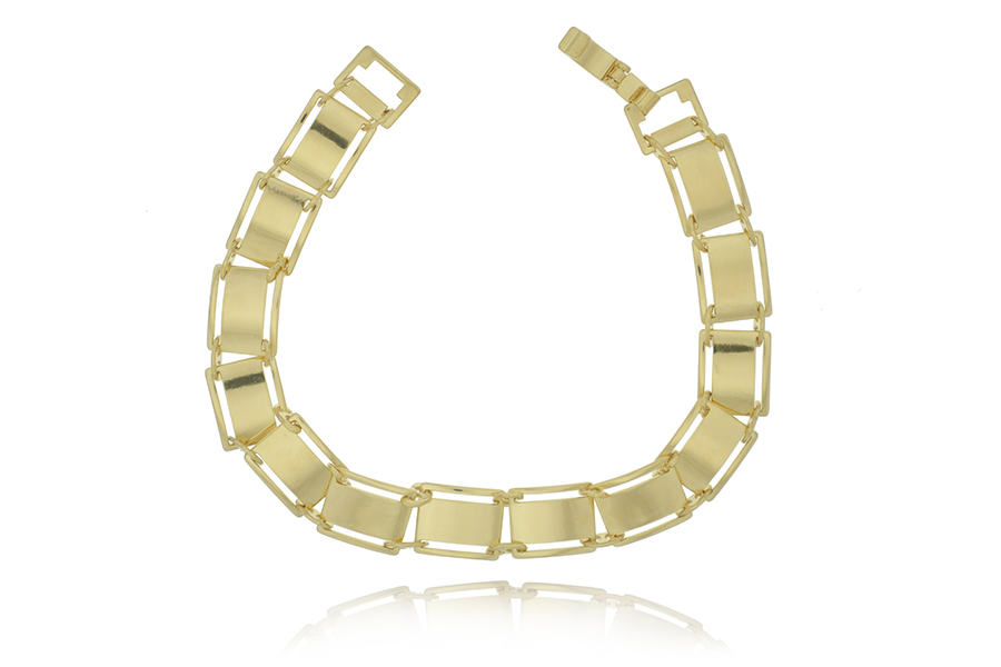 PULSEIRA BANHADA EM OURO, ELO PORTUGUÊS DUPLO 2mm E CARTIER 3,30x1,90mm, 15cm COMPRIMENTO E BORBOLETA 13mm LARGURA